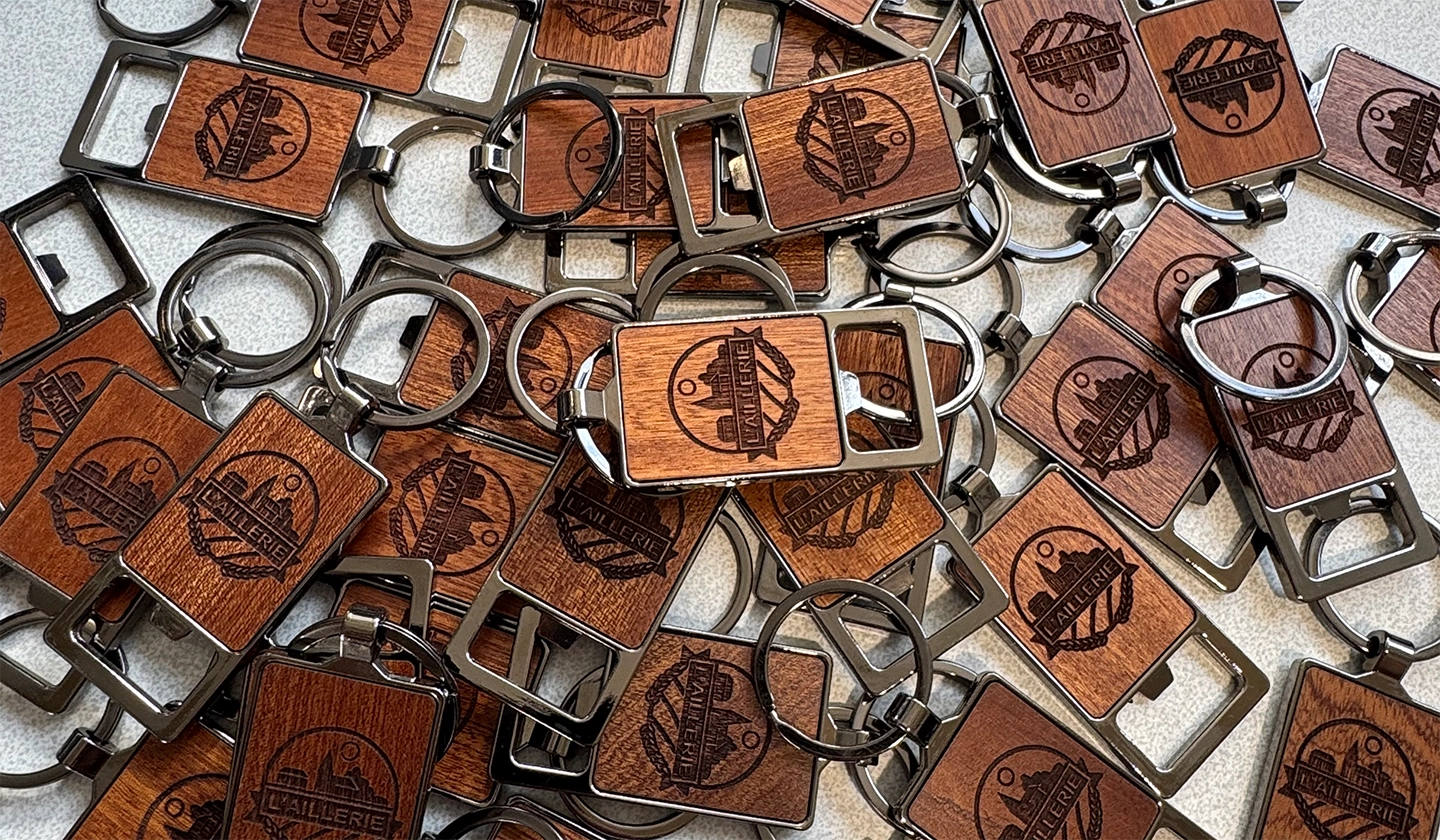 Objets en bois gravés à votre image En complément de nos prestations de découpe, nous proposons la personnalisation d’objets promotionnels en bois. Que ce soit pour un salon, un cadeau client ou un événement d’entreprise, ces objets sont conçus pour refléter votre image avec élégance. Parmi les formats proposés, on retrouve notamment des porte-clés, sous-verres, carnets ou stylos. Grâce à la gravure fine et au rendu naturel du bois, chaque objet devient un support de communication à la fois original et durable. Toutes nos créations sont produites localement, dans notre atelier situé dans le Val-d’Oise. En choisissant notre service de découpe laser bois, vous bénéficiez ainsi d’un accompagnement personnalisé, d’une grande flexibilité et d’un savoir-faire artisanal reconnu.